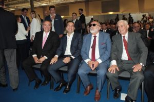 Εγκαίνια Ποσειδωνίων από αριστερά οι κ.κ. Γ. Πατέρας (Πρόεδρος ΝΕΕ),Α. Τσίπρας (Πρωθυπουργός),Π. Κουρουμπλής (ΥΝΑΝΠ),Θ. Βώκος (Ιδρυτής Ποσειδωνίων)