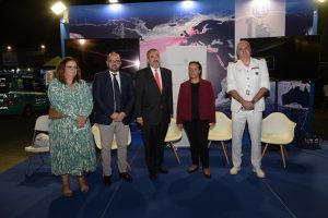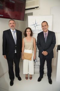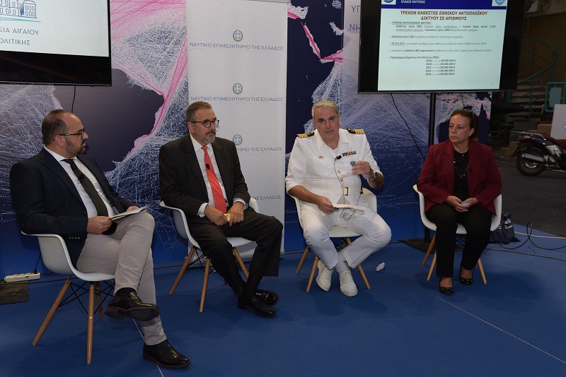 Από αριστερά η κα Αθηνά Φωκά Προϊσταμένη Επιτελικής Δομής ΕΣΠΑ ΥΝΑΝΠ, ο ΓΓ Αιγαίου και Νησιωτικής Πολιτικής κ. Ε. Κουτουλάκης, ο Πρόεδρος ΝΕΕ Δρ. Γ.Δ Πατέρας, η κα Μαρία Μποϊλέ Καθηγήτρια Τμήματος Ναυτιλιακών Σπουδών Παν. Πειραιώς, ο Πλοίαρχος Λ.Σ κ. Γ. Ρίγγας Δ/ντής Θαλασσίων Συγκοινωνιών ΥΝΑΝΠ